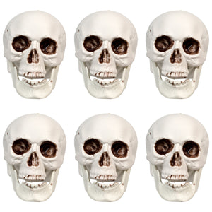 Create a chilling atmosphere with this pack of six white and gray skeleton skull head decorations, the ideal addition to your Halloween setup or haunted house display. Each skull features realistic details, from sunken eye sockets to aged, weathered finishes in shades of white and gray. These lightweight yet durable props are perfect for both indoor and covered outdoor use, bringing eerie vibes to tabletops, staircases, porches, or graveyard scenes. Crafted from molded plastic, these Halloween skull decorations are designed for versatility. Use them to line a party table, scatter around a spooky centerpiece, or stack them into a creepy pile near a faux tombstone. Their neutral tones make them easy to coordinate with other decor elements like cobwebs, bones, or flickering lanterns. Whether you’re designing a spine-chilling Halloween party or setting the scene for trick-or-treaters, these skull heads offer a budget-friendly yet eye-catching solution. Compact and reusable, they store easily for future use. This six-piece set gives you the creative freedom to build out your theme and make a statement with minimal effort. For DIY decorators, horror fans, or anyone looking to elevate their seasonal setup, these skulls deliver creepy character and realistic flair.
