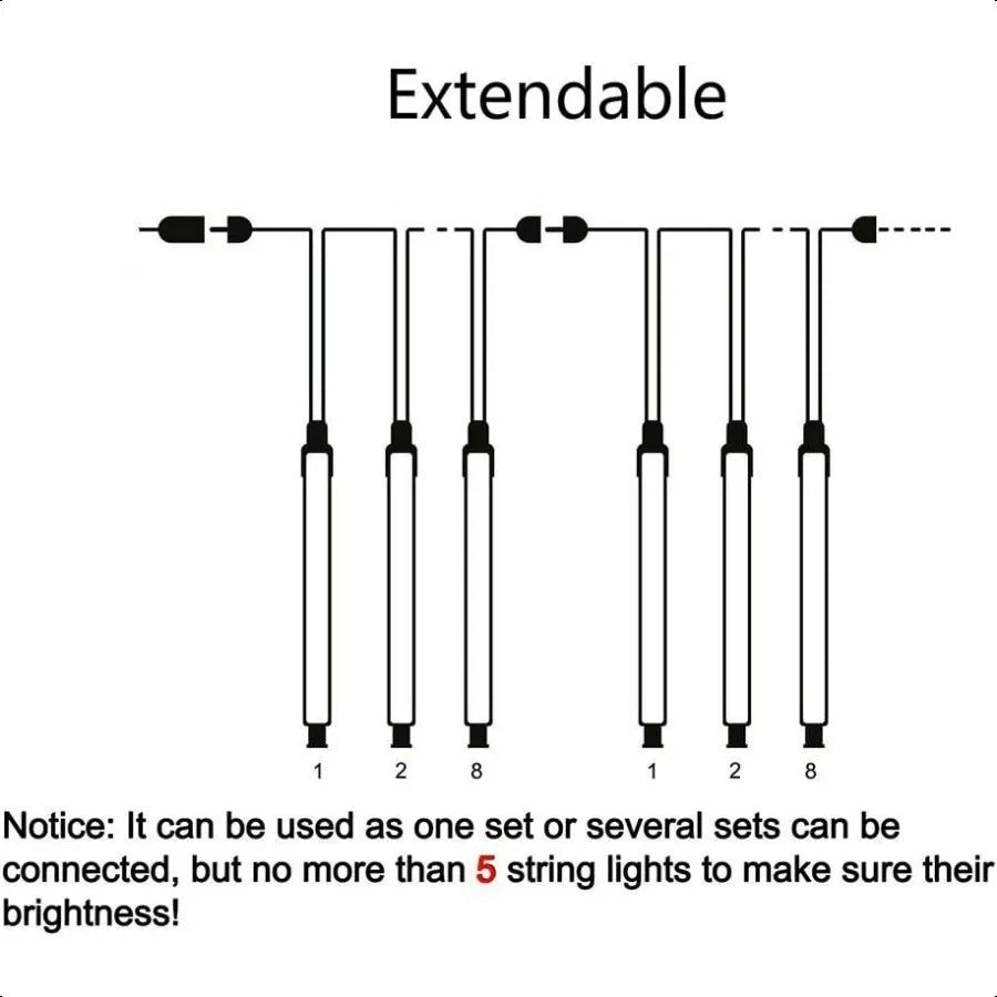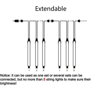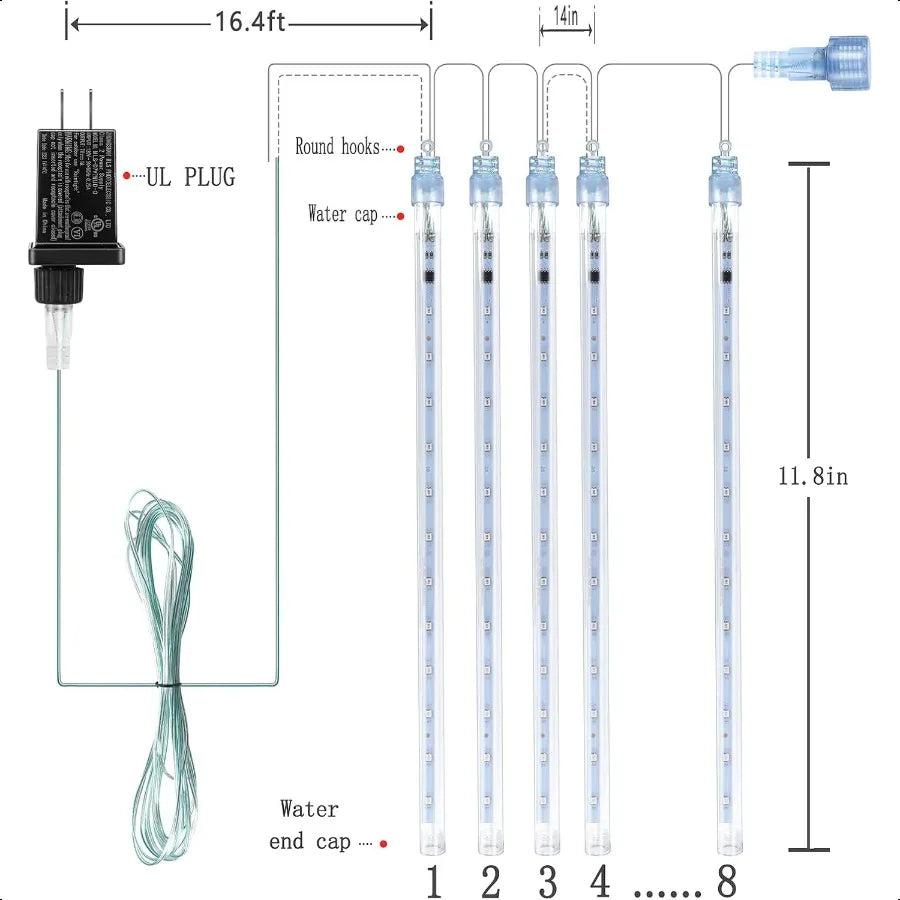 Dynamic Meteor Shower Effect: Features 8 durable light tubes that create a realisticfalling rain, snow, or meteor shower light display, with bulbs lighting up sequentially and quickly, simulating objects dropping from the sky.