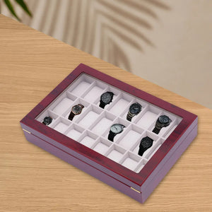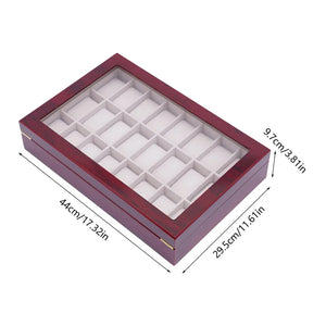 24 Slot Wooden Watch Organizer Display Case with Glass Top Lock