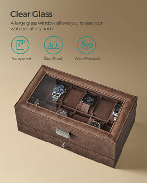 [Clear Glass Lid] The see-through glass lid of this watch storage box allows you to see and find the right watch at a glance while protecting them from dust. Plus, it’s durable and easy to clean