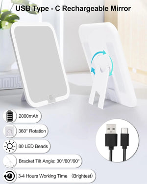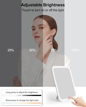 Adjustable Brightness: Features built-in LED lights with customizable brightness settings, allowing you to achieve perfect lighting for flawless makeup application in any environment.