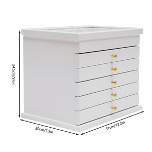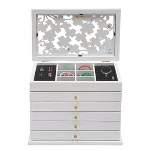 6-Layer Wooden Jewelry Box Jewelry Storage Organizer with Velvet Lining (White)