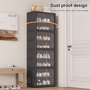 3. Dustproof Design: The shoe rack organizer features PET plastic panels that cover the top, sides, and back, along with easy-to-open transparent doors. This design effectively keeps dust out and is easy to clean. The clear doors allow you to quickly find your shoes.