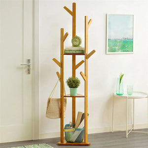 Bamboo Corner Coat Rack Stand with Hooks Shelves