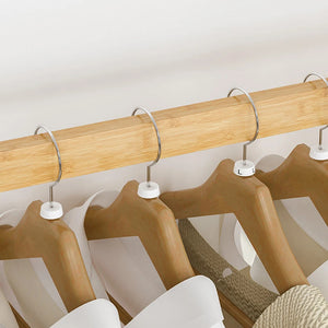 Bamboo Double Clothes Rack with Wheels and Shelves