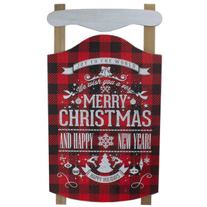 Bring joy and happiness to your home this holiday season with this unique wall sign. It features a wooden sled with a red and black Buffalo plaid design and white script with different holiday phrases. This is the ideal way of spreading holiday cheer to your homestead.