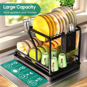【Rustproof and Super Sturdy】: The Dish Drainer made of heavy duty stainless steel with nano-coating finish, the 2 tier dish rack will resist any damage that causes
