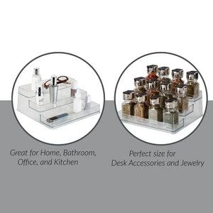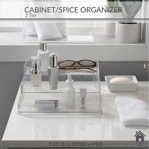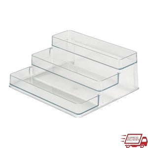 Maximize your cabinet or countertop space with the 3 tier cabinet organizer. It the perfect size to fit in your kitchen cabinet to conveniently store your spices or jars. The 3 tier design makes everything visible and easy to find. You can also keep this in your bathroom or bedroom to store perfume bottles and nail polishes. It keeps everything neat, so your space stays organized and looking nice. The durable construction is built to hold what you need and built to last. You will never have trouble finding the correct spice or nail polish color with this tiered cabinet organizer.