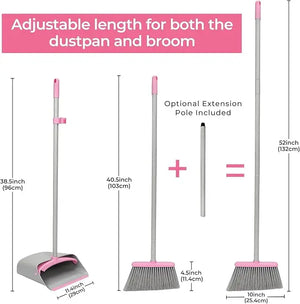 No Bending Required: Engineered with ergonomics in mind, the broom and dustpan's height is adjustable to suit your needs, eliminating the need to bend over while sweeping. Say goodbye to the discomfort of hitting your shoulders with the broom handle during cleaning