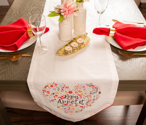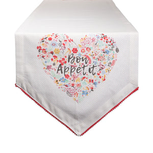 Adorned with heart-shaped floral patterns and ‘Bon Appétit’ on either end