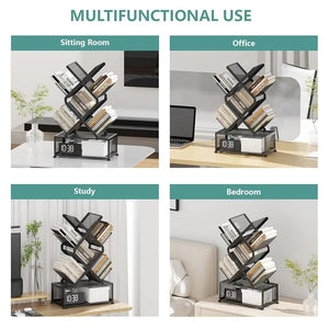 【Space Saving Bookshelf】Sized At 10""D X 20""W X 28""H,Boasting A Acity To Hold 20-40 Books And Additional Storage Drawer At The Base For Thicker Books Or Miscellaneous Item.With 6.6Lb Load Acity Of Each Branch And 6 Open Shelves, Providing Ample Space For Storing 5-10 Books On Each Shelf.This Bookcase Is Perfect For Any Small Or Corner Space In Your Home, Office, Study Room, Apartments, Kitchen, Narrow Spaces, Living Room Or Kid'S Rooms