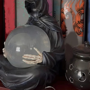 1.Mystical Floating Crystal Ball: This intriguing Grim Reaper Figurine with Light Up Ball features a mysterious figure holding a glowing crystal ball with tiny bats floating inside. When illuminated, it creates an eerie allure, adding a surreal atmosphere to any space.