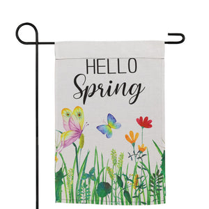 "Hello Spring" Butterflies Flowers Outdoor Garden Flag