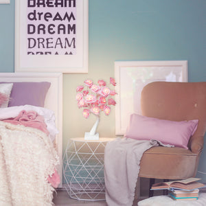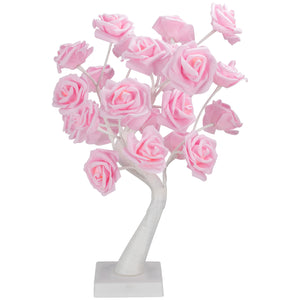 LED Lighted Rose Flower Tree Decoration Warm Lights 17 Inch, Pink and White