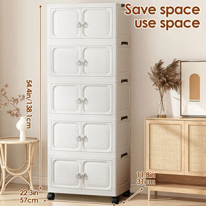 Stackable Closet Organizer 2-Tier with Wheels Large Capacity Storage Box (White)