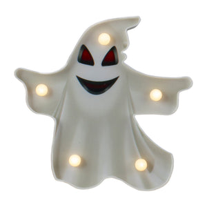 Illuminate your Halloween décor with this lighted Halloween ghost decoration, a playful yet spooky accent perfect for indoor or covered outdoor displays. Featuring a classic ghost silhouette, this wall or shelf decoration glows with super bright LED lights that give it a modern flair while maintaining the fun, eerie vibe of the season. The energy-efficient LEDs are built to shine all night long, making this a reliable centerpiece for Halloween parties, haunted house setups, or porch displays. Designed with convenience in mind, this lighted ghost marquee includes a built-in keyhole loop on the back, making it simple to hang on a wall, door, or anywhere you want to add glowing charm. The lightweight design allows for easy mounting and repositioning, so you can customize your spooky setup with ease. Whether you're creating a haunted entryway, decorating a child's Halloween party, or adding to your festive home décor, this LED light-up ghost sign is the perfect finishing touch. Combine it with pumpkins, spider webs, skeletons, and other Halloween lights for a complete themed display. Add a glowing dose of frightful fun to your seasonal setup with this eye-catching and energy-efficient Halloween marquee decoration.