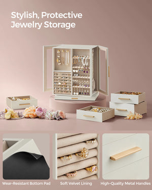 • [Stylish and Protective] This cloud white jewelry storage box features sparkling metal handles, a soft velvet lining, and durable MDF construction, ensuring optimal protection for your expanding jewelry collection