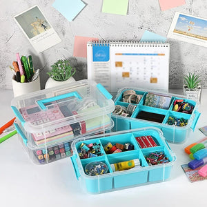 Plastic Stack carry box is 4 tiers with 2 divided tray for best use of space, buckle latches is detachable, we could use it to lock your supplies for safe storage, or use the layer independently to fit individual needs. Storage box comes with 2 divided tray that you can place in whichever box you want. Also has a carry handle on the top so you can latch the 4 boxes together and move them around all at once. Storage container with transparent design, you can clearly see what is in the box easily and find where they are stored, eliminating the hassle of opening the box. Overall dimension is about 27. 8cm x 18cm x 24. 8cm / 10. 8" x 7. 1" x 9. 8". Light weight and easy to transport and carry. Perfect for collecting all small things, such as bobbins, small toys, beads, jewelry, beauty products accessories, scrapbooking supplies, sewing supplies, art supplies, nail polish and so on.