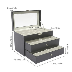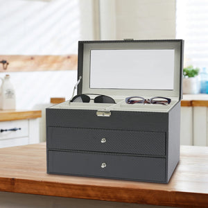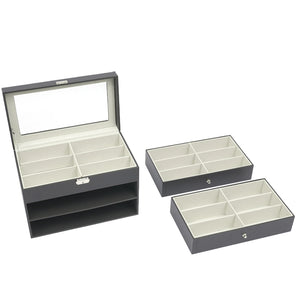 This sunglasses storage box is designed for storing sunglasses and eyeglasses. Drawer type with three layers 18 grids design, convenient and practical to save space, helpful for keeping home clean.