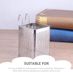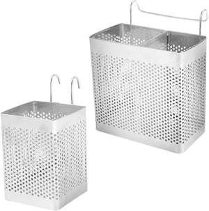 Easy to Attach: This perforated large utensil holder for kitchen counter hanging tableware dryer that fastens easy to your rack with on the backside. The on the back of this silverware holder for kitchen utensils match most racks.