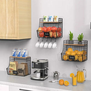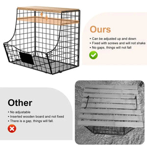 Set Includes: 3 Baskets, 3 Adjustable Wood Lids, and 5 S-Hooks