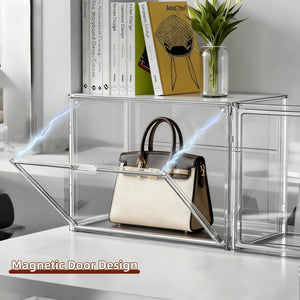 Humanized Design: Magnetic door design- one hand can easily open and close. The Front door design- You put the handbag in the bottom box, you don't have to take the top box off, open the front door and easily take it out and put it in.