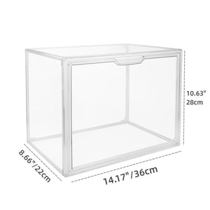 Large & Transparent: Each size 36x22x28cm, or 14.17”x8.66”x10.63”. The space of each clear display box is large enough for placing your handbag, with lid to keep your purse clean;The transparent design can ensure that your collection will be displayed from all angles.