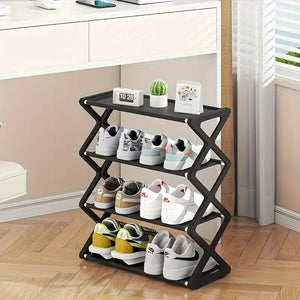 4-Tier Vertical Storage: Provides ample capacity for 12-16 pairs of shoes, depending on size, utilizing vertical space to minimize clutter on the floor.