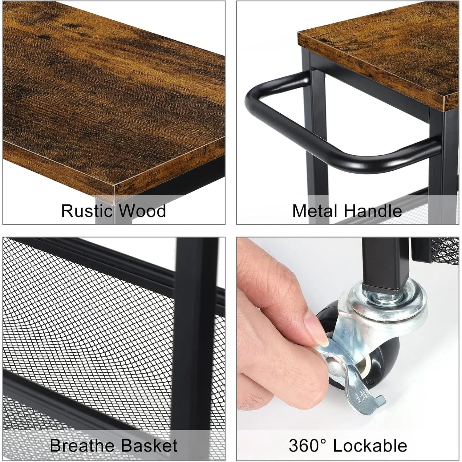 The top of our narrow rolling cart is made of high-hardness wood, which is classic and elegant, waterproof and corrosion-resistant.