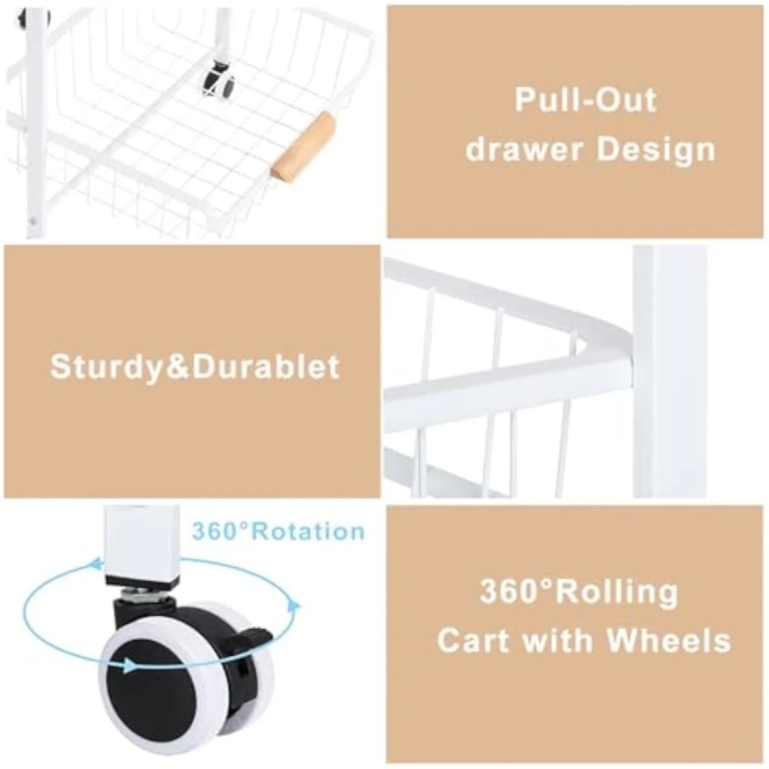 The rolling kitchen cart has a sleek, modern design that complements a variety of interior styles. It can be placed in the living room to store and display books, decorations, electronic products, and other items, adding practicality and beauty to your living space.