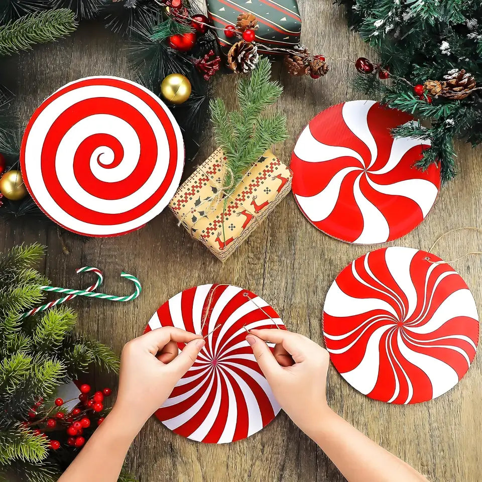 The double-sided design of these peppermint ornaments ensures a festive look from all angles, enhancing your Christmas decor.
