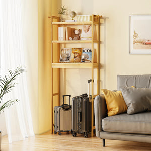 The design with two bamboo hooks on both sides of the top of the shelf will be more stable than the design on the market; Can hang clothes, towels, etc