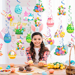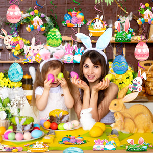The easter bunny hanging swirls in the spring easter decorations are filled with easter elements such as bunnies, eggs, baskets, flowers, etc, and it is exquisite and eye-catching, which can add a touch of magic and surprise to your easter party.
