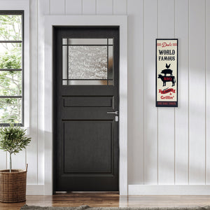Sign reads Dad's World Famous BBQ Chillin & Grillin; Food Family Friends