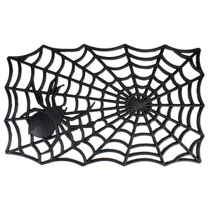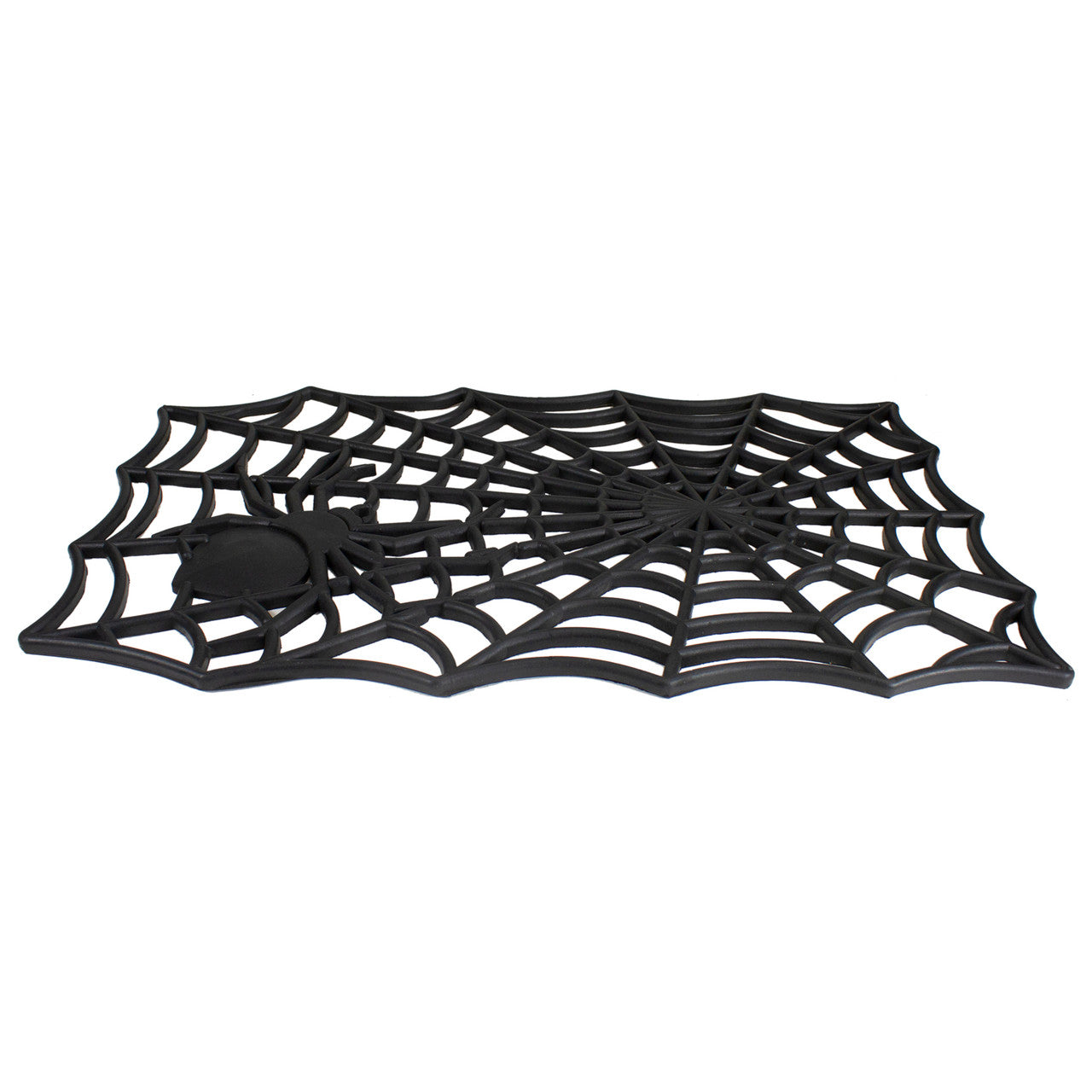 Give your guests a spooky welcome with this spider and web outdoor mat. This thick and durable rubber mat will be perfect for wiping feet and stopping debris from entering your home. Enhance your entry or patio area with a new doormat that fits your Halloween decor!