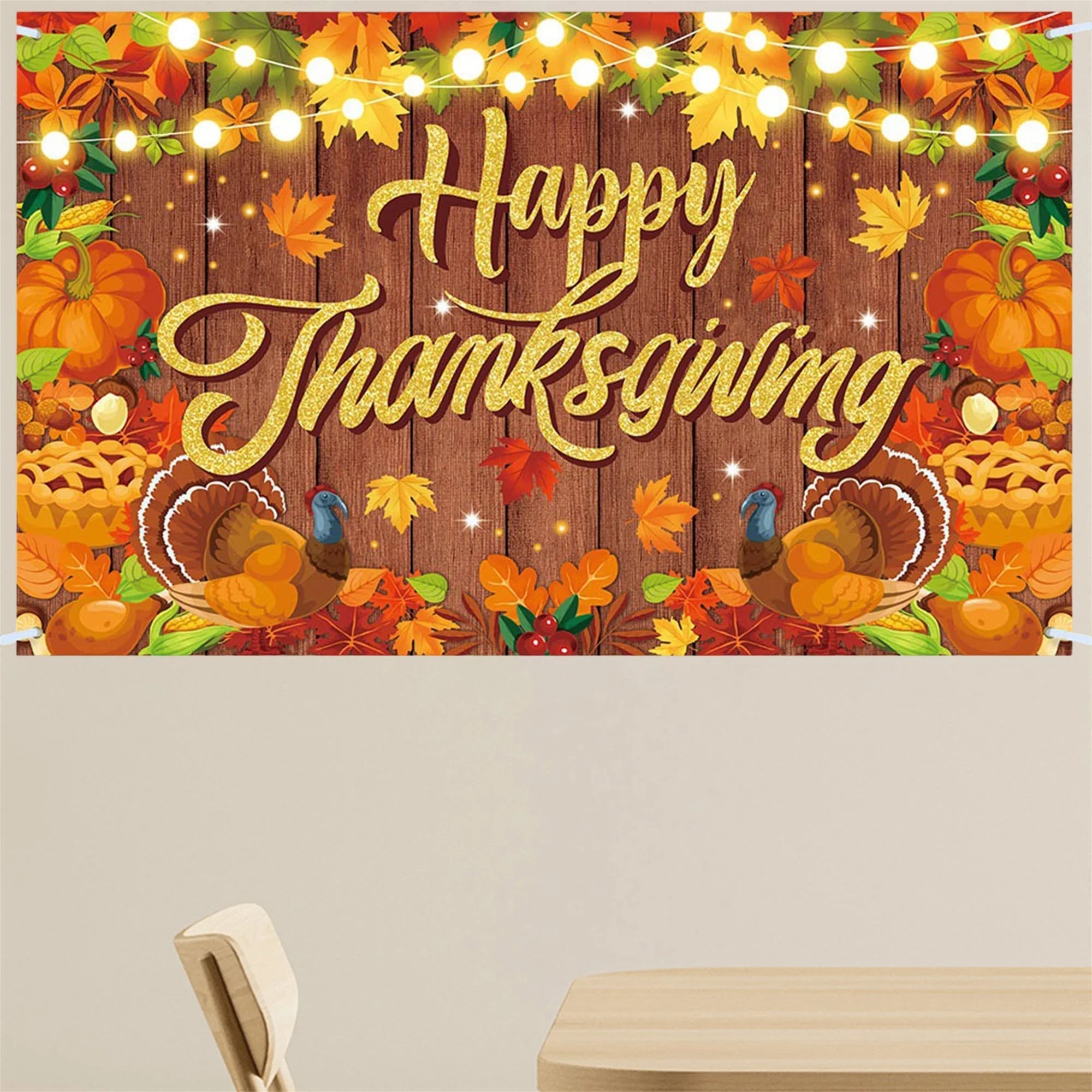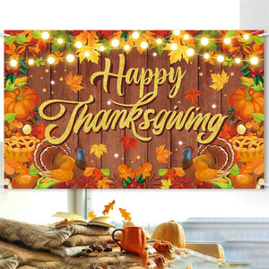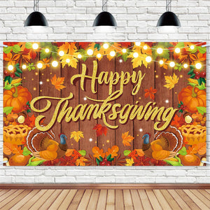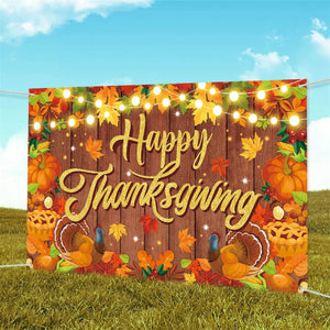 Photography backdrop has bright colors with pumpkin, maple leaves, letters, turkey patterns, creating a joyful atmosphere for your autumn harvest party; Let your friends and family have an unforgettable party