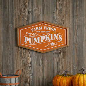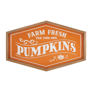 Embrace the cozy charm of fall with the framed farm fresh pumpkins sign. Featuring warm autumn tones and a rustic wood grain frame, this sign highlights the spirit of harvest with a charming seasonal sentiment. The modern hexagon shape adds a unique, eye-catching touch to your entryway, mantel, or living room wall. Equipped with a sawtooth hook for easy hanging, it pairs beautifully with fall floral arrangements, squirrel or gnome figurines, and other festive accents to complete your seasonal decor.
