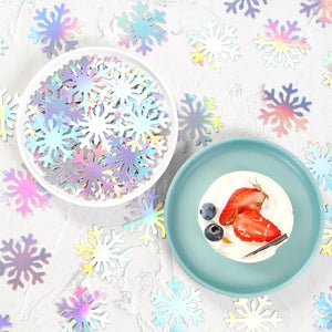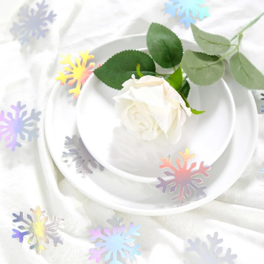 Frozen Party Decorations: 100 Count Iridescent Glitter Snowflake Confetti – Holographic Christmas Table Scatter