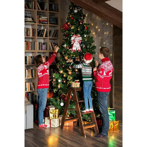 Typically composed of a rich red ribbon (often velvet or glitter ribbon) combined with a white or natural burlap ribbon featuring festive snowflake patterns.