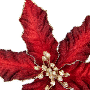 Glittered Velvet Burgundy Poinsettia Christmas Pick (8") Holiday Floral Stem Accent