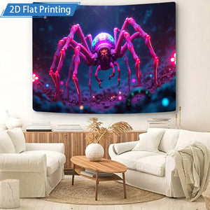 Glowing Purple Spider Wall Tapestry for Halloween Decoration
