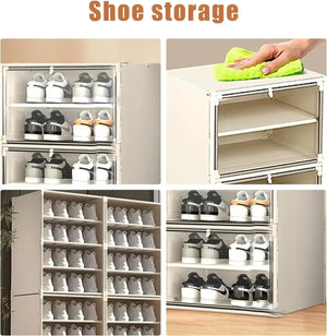 Hard Plastic Folding Stackable Shoe Box Organizer (4 Tiers)