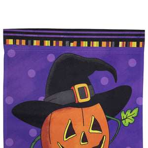 Jack-O-Lantern in Witches Hat Outdoor Halloween Flag
