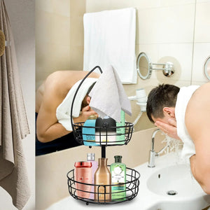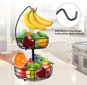 Kitchen Fruit Basket 2-Tier Countertop Storage with Banana Hook (Black)
