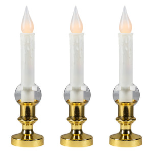 Create a cozy holiday atmosphere with this set of 3 battery-operated window candles. Designed with a classic white body and brass base, they’re perfect for lining windowsills, mantels, or shelves. Each candle features a C5 LED frosted bulb that casts a soft, flickering glow for a warm seasonal touch. Built-in automatic timers keep them glowing for 8 hours and off for 16, so you can enjoy the light without the hassle. A simple, timeless addition to your Christmas décor.