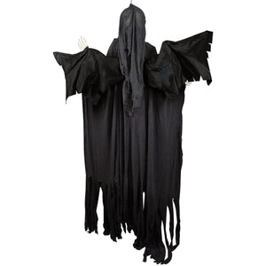 Unleash a spine-chilling display this season with the lighted sound activated grim reaper Halloween decoration. Designed to startle and entertain, this frightening figure reacts to sound, making it an interactive addition to your haunted setup. The skeletal reaper features glowing red eyes that pierce through the darkness, creating an unsettling atmosphere that’s sure to thrill guests and trick-or-treaters alike. Complete with large flapping wings, the reaper appears ready to take flight, adding motion and intensity to your indoor or covered outdoor display. As it activates, sinister laughter echoes, enhancing the chilling effect and amplifying the overall haunted experience. Whether placed at an entryway, hung in a covered porch, or displayed inside your party space, this skeletal reaper instantly becomes a centerpiece of Halloween décor. Crafted for durability, it’s lightweight yet sturdy, making setup and storage simple. Combine it with fog machines, tombstones, or other animated Halloween props for a fully immersive haunted house or yard scene. Perfect for parties, trick-or-treat events, or horror enthusiasts, this sound-activated winged reaper decoration guarantees scares and excitement throughout the season. Add it to your collection for an unforgettable Halloween atmosphere year after year.
