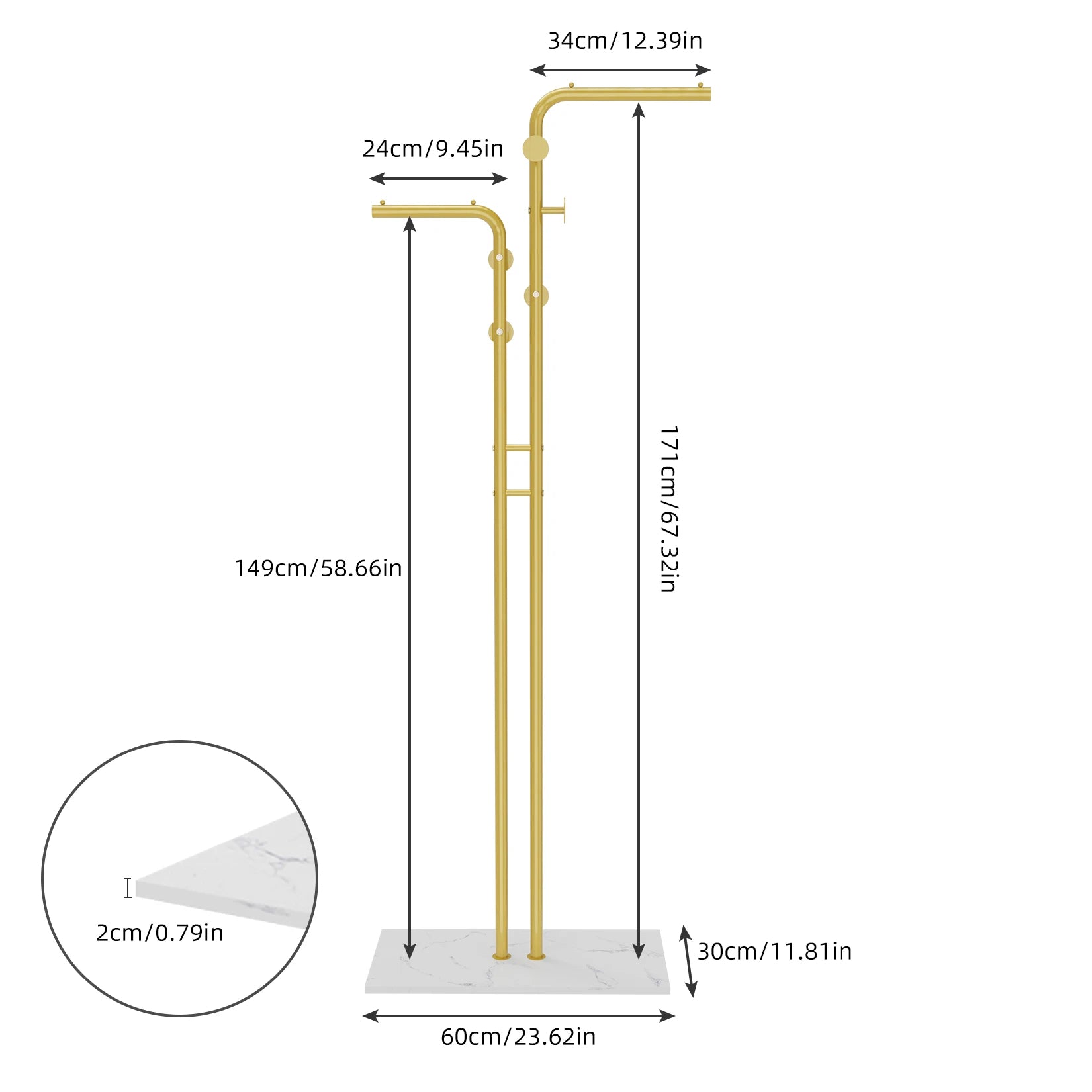 Masterfully combining white and gold, exudes an air of timeless elegance.Free standing coat stand is great for people who don’t want to drill holes on the wall.
