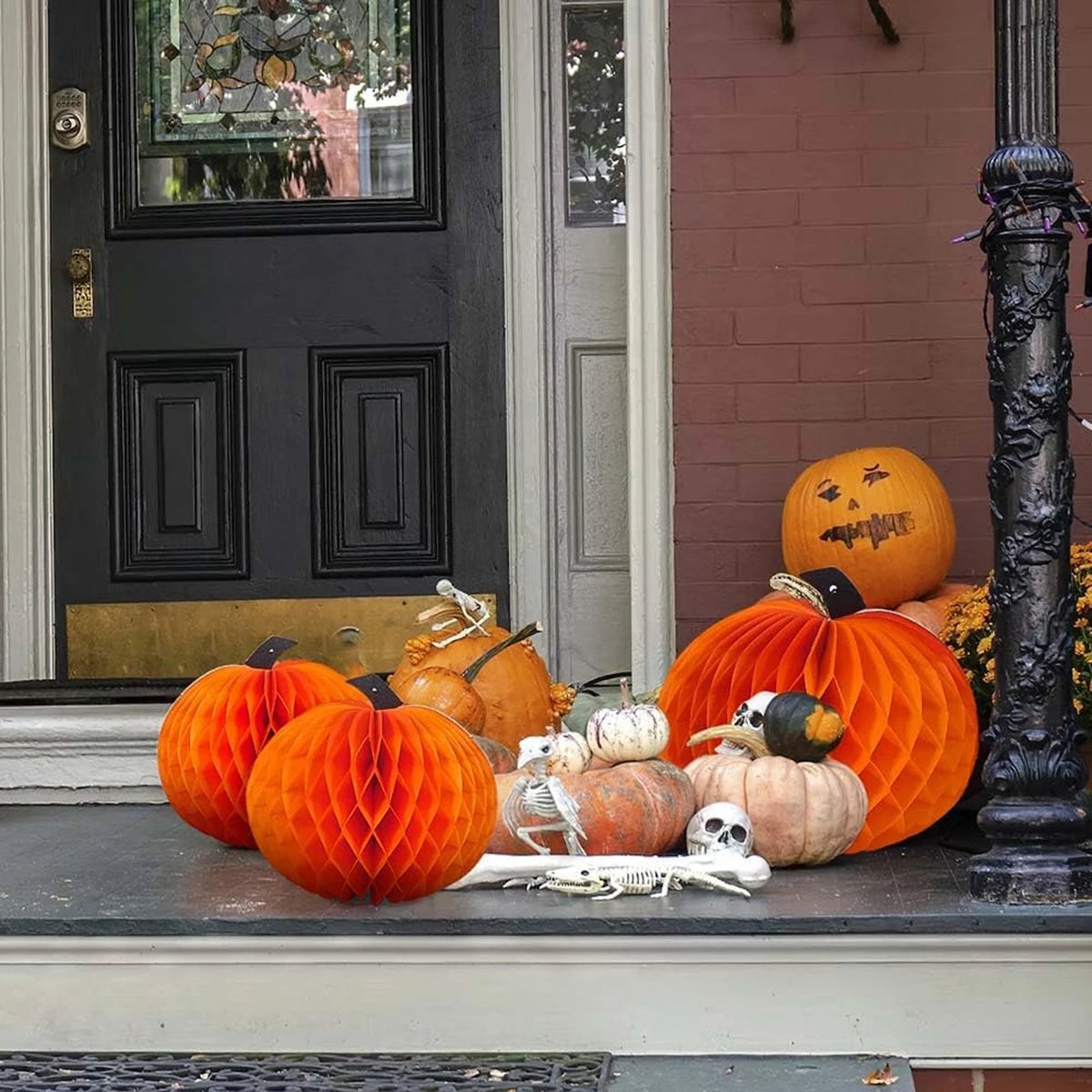 Modern 3-Piece Cubic Design Paper Pumpkins Thanksgiving Tabletop Centerpiece