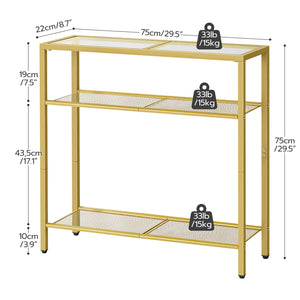 3-Tier Storage Space: This console table provides sufficient storage and display options with its wide top for potted plants, books, photo frames and other items. 2 mesh shelves reserve the good place to place storage baskets, shoes and gift boxes
