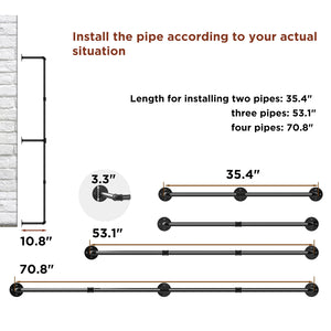 Modern Industrial Clothing Rack 70.8" Wall Mounted Rack (Black)